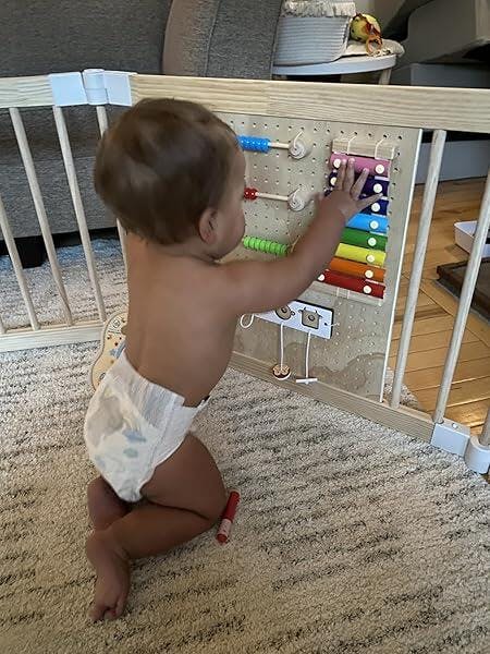 Unboxing this thing felt like opening a gift to myself even though it was obviously for the baby. The wood looked better than expected and didn’t have that weird smell some new stuff comes with. Setting it up was a little awkward at first because figuring out the shape adjustment took a second but once it clicked it made sense. The gate lock made a satisfying sound when it snapped into place and gave a little peace of mind that the kid wasn’t getting out without some effort. First test run was during breakfast and it actually kept my little explorer contained long enough for a hot meal and a sip of coffee that didn’t go cold. The space inside felt bigger than it looked in the photo which was a good surprise. Tried shaping it into a rectangle for a change one afternoon and it weirdly made the room look bigger even though it took up the same space. There’s a funny thing that happens when a baby has a space that’s theirs and they start dragging toys in like it’s a fort. It turned into a play zone with stuffed animals stacked like towers and a random spoon that’s apparently now a treasure. Wasn’t expecting the fence to survive a toddler tantrum but it held its ground like a champ while wobbling just enough to not tip. Even leaned against it myself out of habit and it didn’t move which wasn’t smart but still reassuring. Folding it down to move to another room felt smooth after a few practice rounds. Definitely didn’t see this becoming a daily setup but now it’s a regular thing and feels weird when it’s not there.